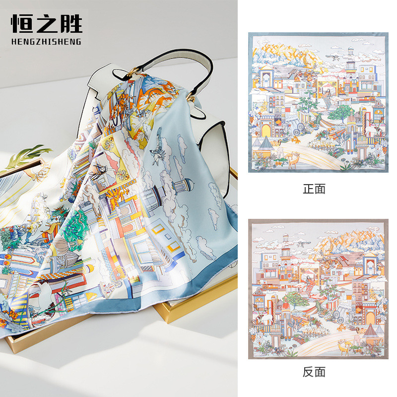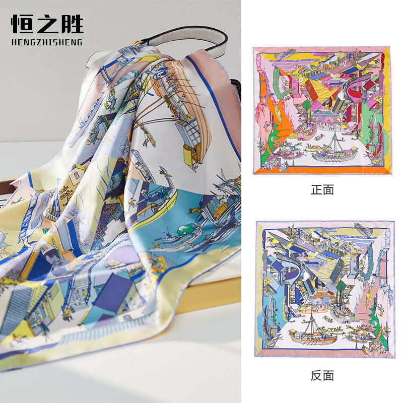 100% Silk Square Scarf Double-Sided Color-Block Mulberry Silk Sunscreen Scarf Women's Square Scarf Shawl