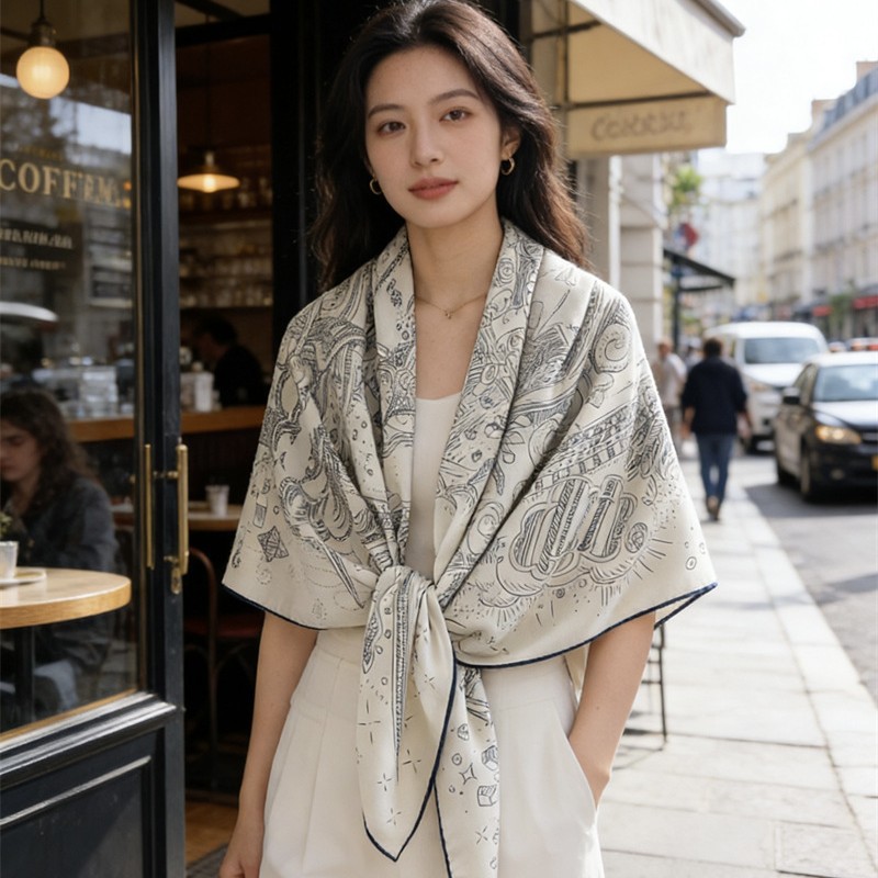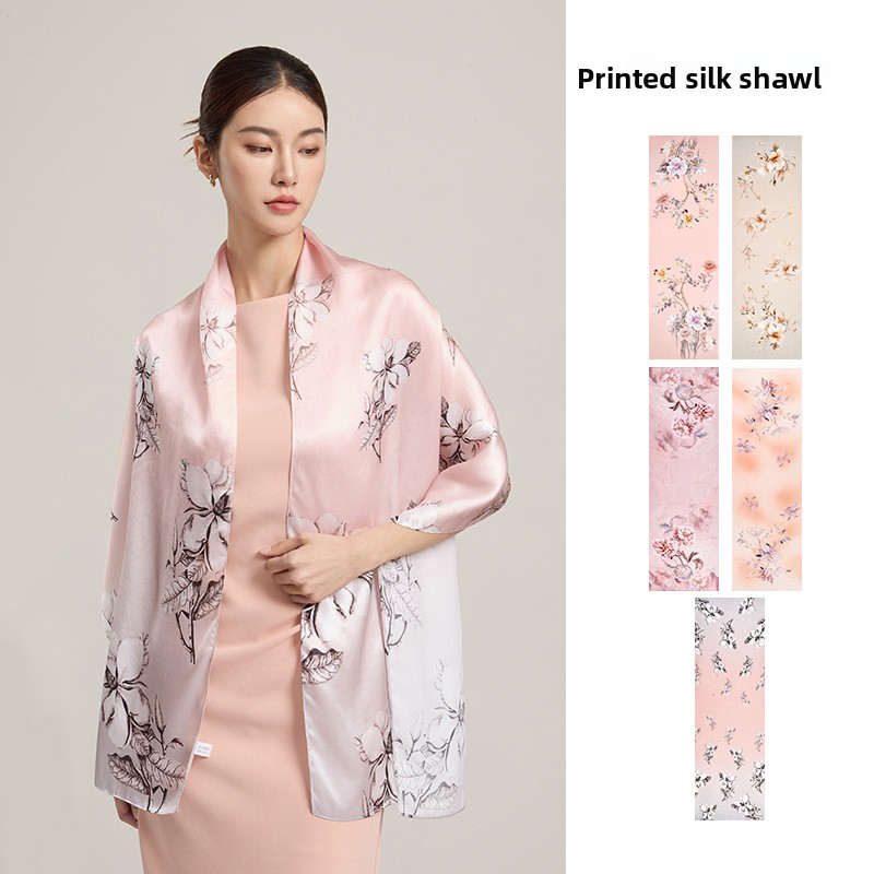 Silk fashion scarf, lightweight double-sided printed shawl